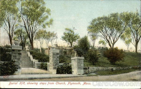 Front: Burial Hill, showing steps from Church, Plymouth, Mass. Back: A378 2- No. 8040. The Robbins Bros. Co., Boston, Mass, and Germany. (38666)