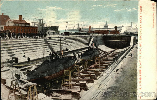 Front: HTT 545 U. S. SUBMARINE BOAT "PLUNGER", BROOKLYN NAVY YARD The Platinachrome Co. N.Y. Back: BRADFORD PA, 61Nr 10 AM 9061 38 2 subs LYN.N.! JUN 18 HOUHANG 1906 3-3-0 !!! H. Breeden Seaward Are- Влаар Pa. Place
