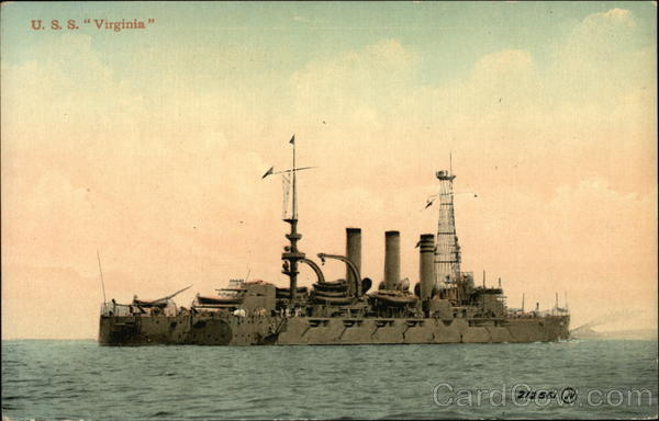 Front: U.S.S. "Virginia " C/T 212561 V Back: 41 4₁ Published by the Valentine & Sons' Publishing Co. New York and Boston. THROUGHOUT THE WORLD. V&SONS CARD. FAMOUS