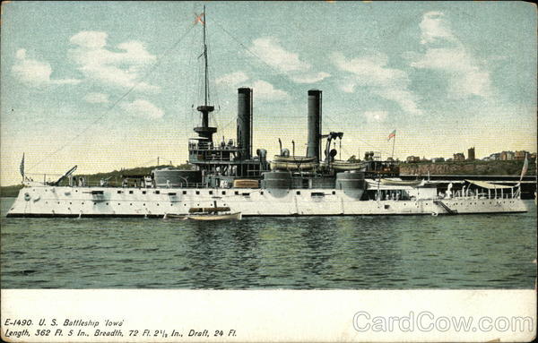 Front: E-1490. U. S. Battleship lowa Length, 362 Ft. 5 In., Breadth, 72 Ft. 2¹2 In., Draft, 24 Ft. AINDA Back: S.1496. GERMANY. 201122 Island Possessions, Canada, Mexico and Cuba 41