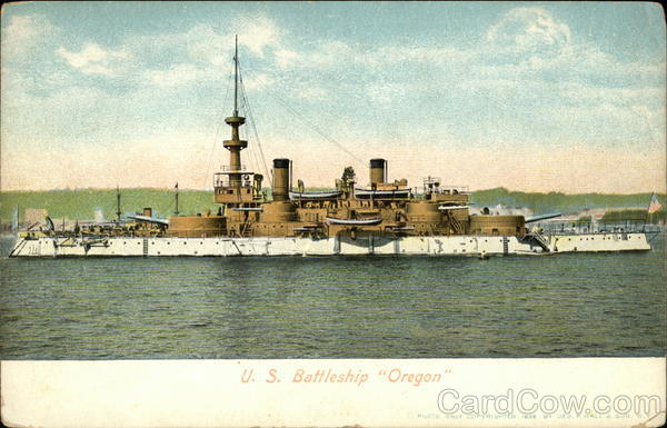 Front: U.S. Battleship "Oregon" PHOTO ONLY COPYRIGHTED 1898 BY GEO. P. HALL & SON. N.Y Back: (o 4- E 8014