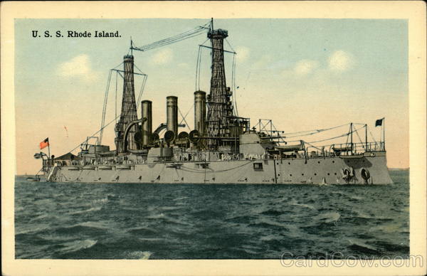 Front: U. S. S. Rhode Island. 19 M. NA . A ** Back: Mfg. by Tichnor Bros., Inc., Boston, Mass. DOST 4- THIS SPACE FOR ADDRESS ONLY