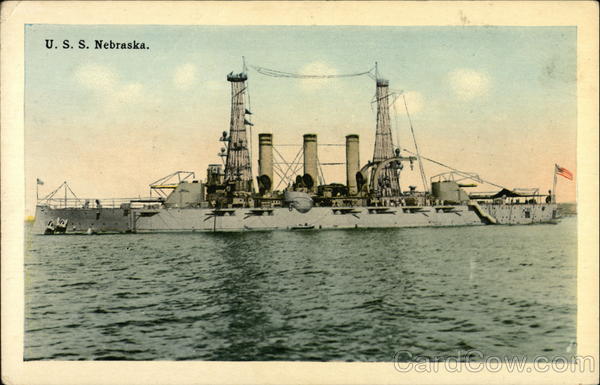 Front: U.S. S. Nebraska. Back: Mfg. by Tichnor Bros., Inc., Boston, Mass. 4- THIS SPACE FOR ADDRESS ONLY