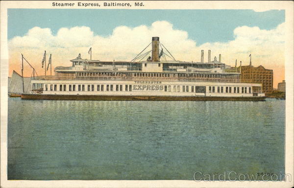 Front: Steamer Express, Baltimore, Md. 11 1.11 TOLEHESTER EXPRESS T 11 24106 Back: Harry P. Cann & Bro., Baltimore, Md. MADEMUSA BA Bro LTIMO STAMP HERE