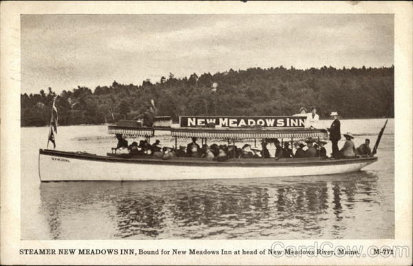 STEAMER NEW MEADOWS INN, Bound for New Meadows Inn at head of New Meadows River, Maine.