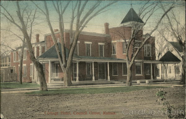 Front: Collage Hotel, Council Grove, Kansas Back: Pub. for Leslie H. Smith, by A. M. Simon. New York Council I love the R.R. Mansel. Thanks for Repair چه AMS 14 017 APR DOM 1909 TANS Bertha & Goff attleboro ROV Mass.