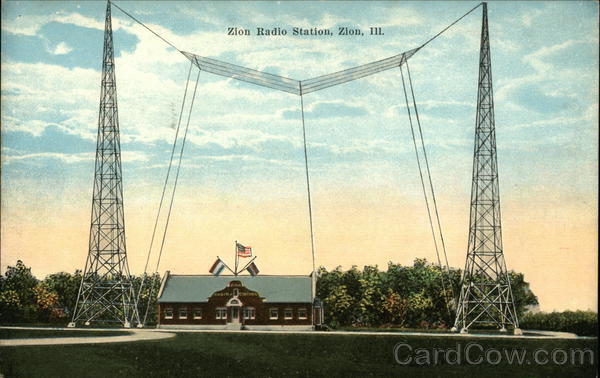 Front: Zion Radio Station, Zion, Ill. 2:08 RADIO/LIETATION 미미미 담 Back: Pub. for Zion Institutions & Industries Department Store, Zion, Ill. 28500N Co