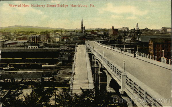 Front: View of New Mulberry Street Bridge Harrisburg, Pa. 1822 han LARGEST E MOST COMPLETE AND CO. HOME FURNIS HERS CREDIT. 100 326 1PKET ST. ******* Und B Back: 4. STAMP HERE