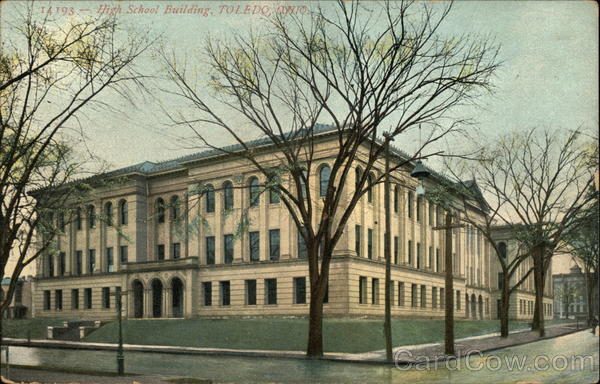 Front: 14193 High School Building, TOLEDO f Back: SOUVENIR POST CARD Co., NEW YORK. PostGard TWO CENTS