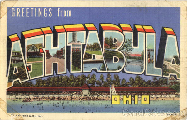 Front: GREETINGS from OHIO 4B-H1270 ) CURT TEICH & CO. INC. Back: DISTRIBUTED BY C. L. CARLE, ASHTABULA, OHIO octio Ermelo