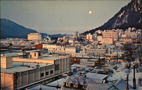Front: 1000000-00000 GO ALD ALJ LU ITHU GA Back: JUNEAU, ALASKA The Capital city bathed in moonlight. Photo by John Rain Alaskan Scenic Post Cards - J & H Sales Anchorage, Alaska ALASKA JOE original by COLOURPICTURE BOSTON, MASS. 02130 P71491