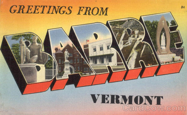 Front: В4 GREETINGS FROM VERMONT Back: 87383 "TICHNOR QUALITY VIEWS" REG. U. S. PAT. OFF. MADE ONLY BY TICHNOR BROS., INC., BOSTON, MASS. PUB. BY THE RIVERSIDE PAPER CO., BURLINGTON, VERMONT