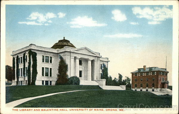 Front: THE LIBRARY AND BALENTINE HALL, UNIVERSITY OF MAINE, ORONO, ME. *** 20000000 EV 표기 Back: FOR CORRESPONDENCE, ONLY UNIVERS SITY CIATLO OF MA ORONO 3.0⁰ GARD HERE