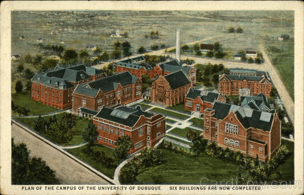 PLAN OF THE CAMPUS OF THE UNIVERSITY OF DUBUQUE. SIX BUILDINGS ARE NOW COMPLETED.