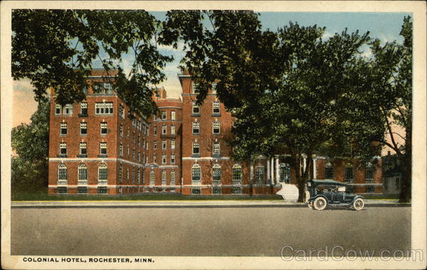 Front: 曲曲 11-15 COLONIAL HOTEL, ROCHESTER, MINN. 10 D ·连 目 Back: 125 Quality Line Bloom Bros.Co Minneapolis R 66896 AND CANADA. TWO CENTS.
