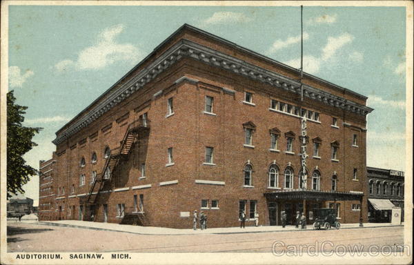 Front: AUDITORIUM, SAGINAW, MICH. il ㅓ - COL2185 111111 Back: 15049-PUB. BY SAGINAW WOODENWARE CO., SAGINAW, MICH. COMMERCIAL CHROME st al PLACE