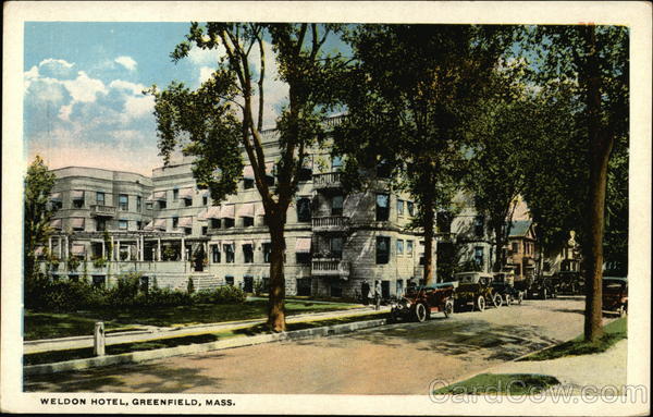 Front: WELDON HOTEL, GREENFIELD, MASS. BE Back: PUBLISHED BY CHAS. W. HUGHES, MECHANICVILLE, N. Y. STAR QUALITY FOR WRITING MESSAGES. MERICAN ART A-57347 چی 009 THIS SPACE FOR ADDRESS ONLY.