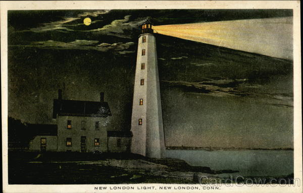 Front: NEW LONDON LIGHT, NEW LONDON, CONN. Back: 2028 OITOIRS GHROMIE G&S NEW YORK July. 30 st 1916 Wish Scorge + Flossie Chipm 2 foggy day. ofery rough Steamer Plymouth اساشهد hul. Colo Registered