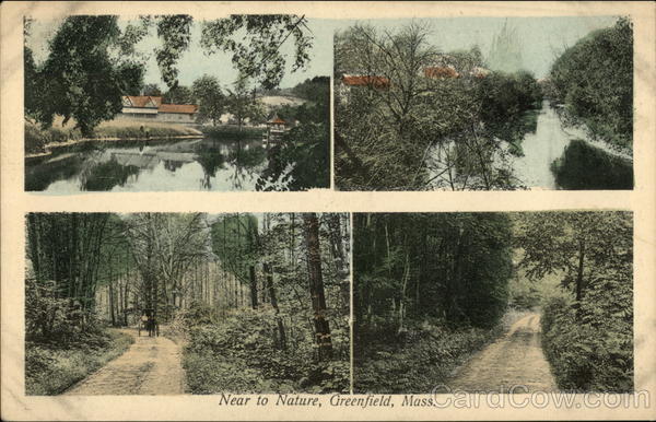 Front: Near to Nature, Greenfield, Mass. Back: Published for Stetson's Electric Print No. 2655 POST CARD. 300 sessions 1 c Mexican 2 c
