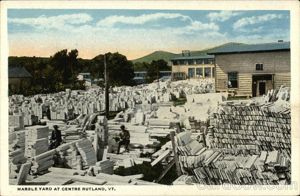 Front: MARBLE YARD AT CENTRE RUTLAND, VT. HO Back: MADE IN U, S. A. PUBLISHED BY CHAS. W. HUGHES, MECHANICVILLE, N. Y. AR QUALITY STAR FOR WRITING MESSAGES. MERICAN CHICAGO A-54233 DOST THIS SPACE FOR ADDRESS ONLY.