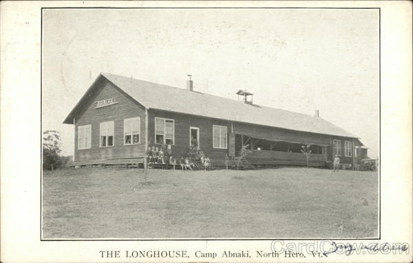 THE LONGHOUSE, Camp Abnaki, North Hero. Vtg address