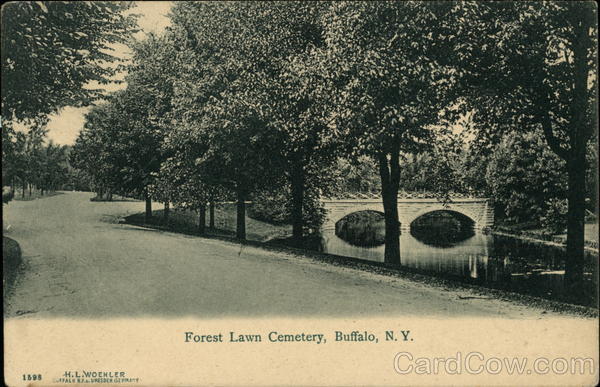 Front: 1598 H.L.WOEHLER CUFFALO N.Y.u. DRESDEN GERMANY - Forest Lawn Cemetery, Buffalo, N. Y. Back: W. N.Y. Place the StampHere for United States. Cuba, Canada and for Foreign.