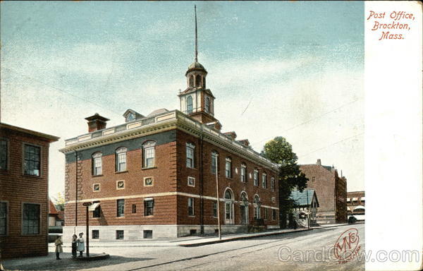 Front: Me RADEMARK Post Office, Brockton, Mass. Back: No. 6971. The Metropolitan News Co., Boston, Mass. & Germany. COPYRI We DEMARK Post Card & 046 TWO CENTS