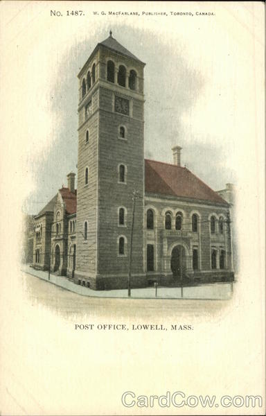 Front: No. 1487. W. G. MACFARLANE, PUBLISHER, TORONTO, CANADA. 11 POST OFFICE, LOWELL, MASS. Back: PRIVATE POST CARD. 4-