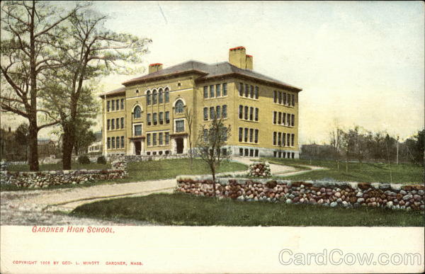 GARDNER HIGH SCHOOL, COPYRIGHT 1906 BY GEO. L. MINOTT GARDNER, MASS.