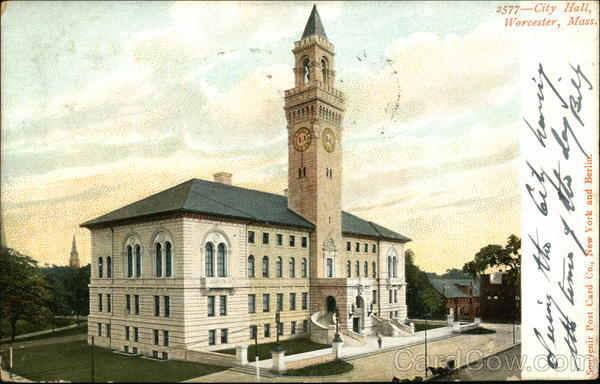 Front: I|I| Lucing **000 that Souvenir Post Card Co., New York and Berlin. TE مود Belf Worcester, Mass. 2577-City Hall, Back: FdT مه CHB: Step 5 - PM 4901 Mr. H. I من ہوا 6 17 کی Buttrick Toge &dly UNITED STATES OF 1706 FRANKLIN 1790 PM TEN Mass.