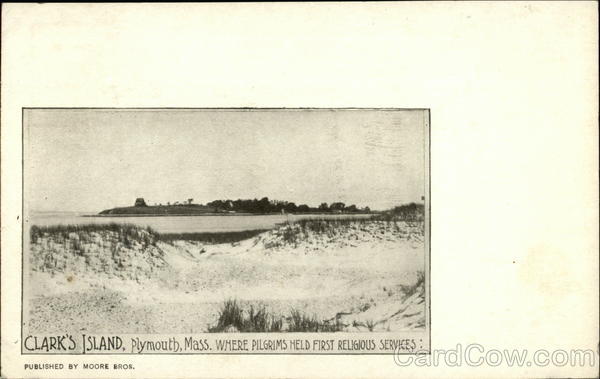 My CLARK'S ISLAND, Plymouth, Mass. WHERE PILGRIMS HELD FIRST RELIGIOUS SERVICES: PUBLISHED BY MOORE BROS.