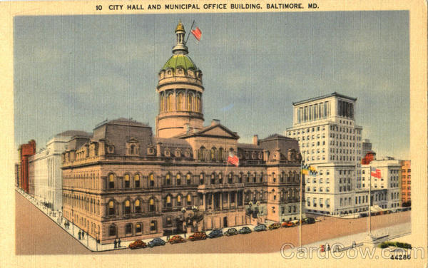 Front: 10 CITY HALL AND MUNICIPAL OFFICE BUILDING, BALTIMORE, MD. 1] न् 44286 Back: PUB. BY M, LEVIN BALTIMORE, MD. IN