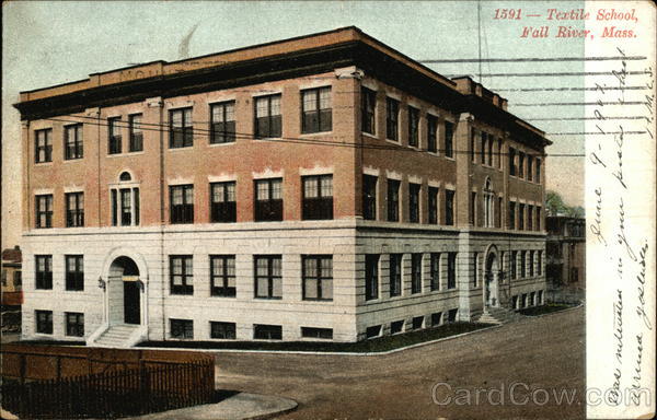 Front: FR 06 IE 1591 Textile School, Fall River, Mass. June 9-V yuuu hac Was milevested Joshuale. arrived Back: RIVERS Post Cart 19 MASS PM Jeg 07 400 NITED STATES OF 1:06 Fr Muss Anne S. Brown 348 kummit aus. Mount Vernon N.G.