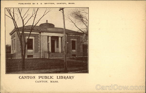 Front: PUBLISHED BY E. C. BRITTON, CANTON, MASS. CANTON PUBLIC LIBRARY CANTON, MASS. Back: mas 1909- DOMESTIC IC. FOREIGN 2C.