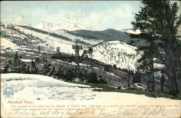 The summit of the pass has an altitude of 10,856 feet. The pass is a scenic and scientific wohder; the streams from the