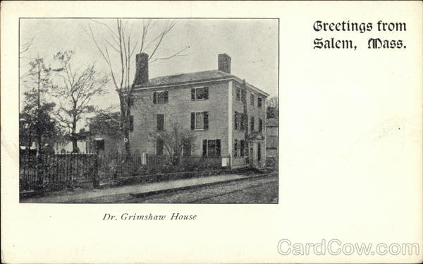 Front: 11 Dr. Grimshaw House IF Greetings from Salem, Mass. Back: Denir of Salem Mass FOST GARD This side for the address only