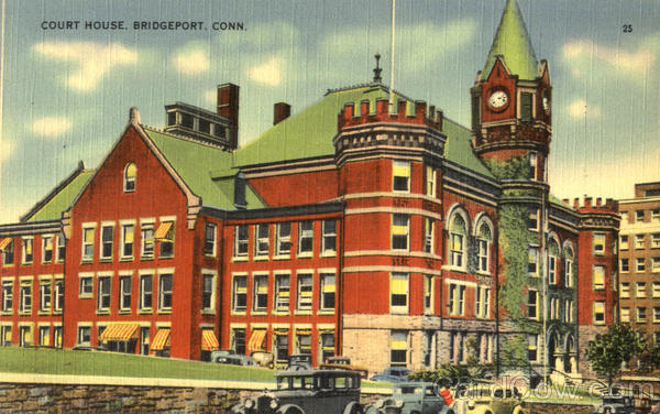 Front: COURT HOUSE. BRIDGEPORT. CONN. 25 EEEå¹³ERE Back: MADE IN U. S. A *TICHNOR QUALITY VIEWS REG. U.S. PAT, OFF. MADE ONLY BY TICHNOR BROS, INC., BOSTON, MASS, 63209 JB. BY NATHAN SCHWARZ & SON, BRIDGEPORT, CONN.