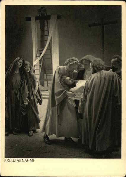 Front: KREUZABNAHME Back: Aufnahme: Siegbert Bauer, München. Nr. 11/16 Verlag_copyright F. Bruckmann A.G. München. Kupfertiefdruck Brend'amour, Simhart & Co., München. Oberammergau Jubiläums-Passionsspiele 1934 Offizielle Postkarte