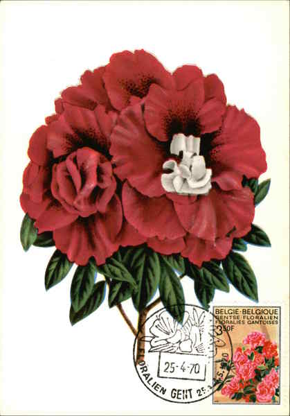 Front: FLORALIEN 25-4-70 GENT 25 BELGIE BELGIQUE GENTSE FLORALIEN FLORALIES GANTOISES 5OF AZALEA SIMS MS 0401's 1970 Back: AZALEA SIMSII Documents Ministère de l'Agriculture Service Information 000 1970 Maximaphiles Belges - A.S.B.L.