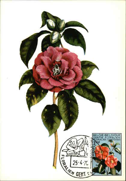 Front: FLORALIEN 25-4-70 GENT P BELGIË BELGIQUE GENTSE FLORALIEN FLORALIES GANTOISES 150F CAMALAPONICA OBS 670 Back: CAMELLIA JAPONICA Aucubofolia Documents Ministère de l'Agriculture Service Information 000 1970 A.S.B.L. Maximaphiles Belges