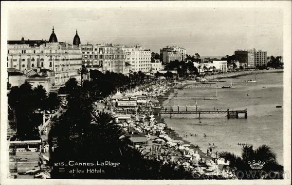 Front: MIRAMA CHARLI Baine su la Croro ette 215.CANNES.La Plage CAIFFEUR et les Hôtels MLUNIER Back: EDITIONS D'ART MUNIER MONTLUET, SUCR. 19. RUE MARCEAU. Nice
