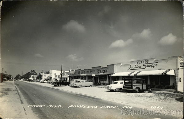 Front: HYL Tashi HYLAND'S BEAUT Jashion Shoppe DARK PARKWAY VARIETY STORE Pexall DRUGS PARK BAKERY 561O ORUES RESTALRANT EICE BAKERY 5-10 PARK BLVD. PINELLAS PRRE, FLA 39411 Back: POST CARD E ALL RIGHTS RESERVED-THE L. L. COOK CO., MILWAUKEE