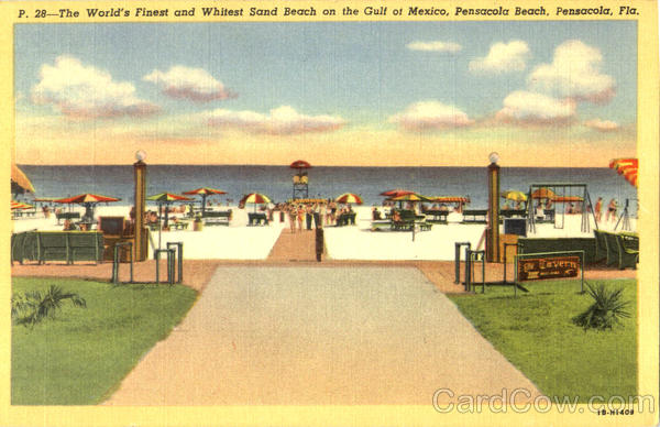 Front: P. 28-The World's Finest and Whitest Sand Beach on the Gulf of Mexico, Pensacola Beach, Pensacola, Fla, TeCavern IB-HI409 Back: PENSACOLA NEWS AGENCY, PENSACOLA, FLA.