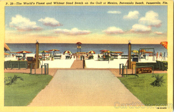 Front: P. 28-The World's Finest and Whitest Sand Beach on the Gulf of Mexico, Pensacola Beach, Pensacola, Fla. A-NE IB-H1409 Back: PENSACOLA NEWS AGENCY, PENSACOLA, FLA.