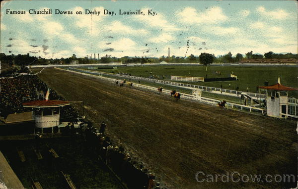 Front: Famous Churchill Downs on Derby Day, Louisville, Ky. ******* MY. Back: Just a cond let you know to L-vil te A! MESSAGES •NOKYS! NOV 930 P some town есть 1. IAKO Gie 1910 Dan poc 11344 ANTOFING N. S. Lo AS SOFT Peeraton می چه hav Ing