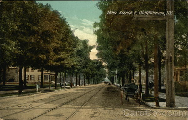 Front: 204,926. Jn) Main Street, E. Binghamron, N.Y. Back: The Valentine & Sons' Publishing Co., Ltd., New York SOUVENIR POST GARD 200