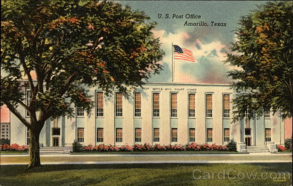 Front: U. S. Post Office Amarillo, Texas aST OFFICE ANG COURT HOUE 15,908 Back: A "COLOURPICTURE" PUBLICATION, BOSTON 15, MASS., U. S. A SOLD BY WEST TEXAS NEWS AGENCY, AMARILLO, TEXAS