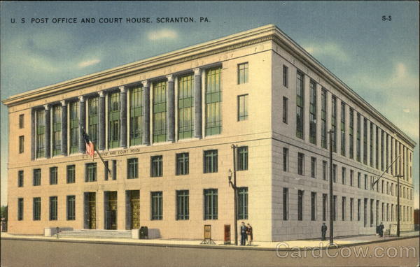 Front: U. S. POST OFFICE AND COURT HOUSE, SCRANTON, PA. S-5 AND GURT HOUSI Back: MADE IN U. S. A PUB, BY R. RAMSAY MEBANE, WILKES-BARRE, PA, 63517