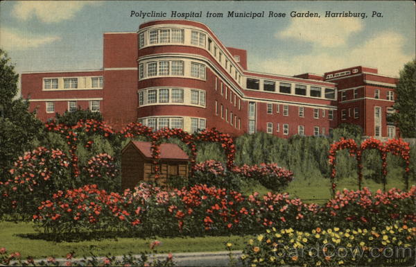 Polyclinic Hospital from Municipal Rose Garden, Harrisburg, Pa.