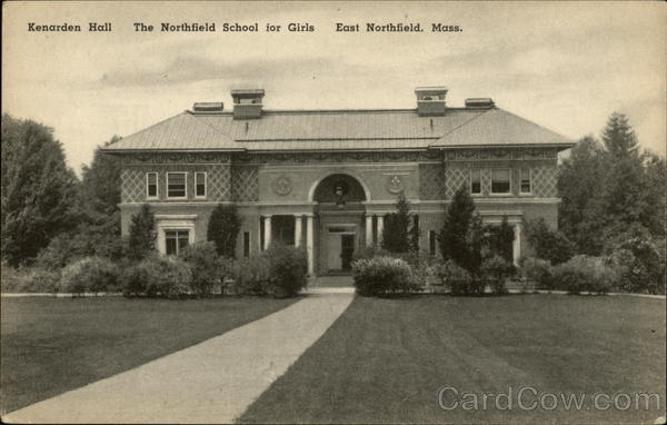 Front: Kenarden Hall The Northfield School for Girls East Northfield, Mass. Back: PUBLISHED BY THE BOOKSTORE, EAST NORTHFIELD, MASS. THE FINEST AMERICAN MADE VIEW POST CARDS-THE ALBERTYPE CO., BROOKLYN, N. Y.